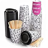 40 tazas de café de papel, taza de 8 onzas con tapa para hacer café con planchas de madera para hacer café, té, bebidas frías y calientes